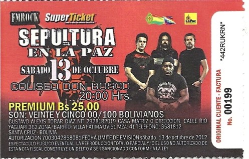 Some months later when posters started appearing around La Paz for an upcoming show by Brazilian extreme metal band Sepultura, I took what I viewed as an opportunity to remind the boss of the wisdom he had forsaken by first subtly calling out his lack of awareness of the show, and then suggesting we attend together. Despite never having heard of Sepultura, he signed on